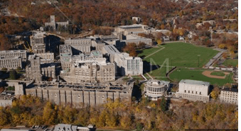 The campus itself is on a steep hill. At the bottom of the hill, train tracks parallel the river; both the tracks and the river run along two sides of the hill, taking a sharp turn as they pass the campus. The football stadium, where we will go in a few hours, is at the top of the hill and is reached by yet another long, winding road that is probably no longer than a mile but takes quite some time to traverse. The parade ground, about halfway up, is our first destination today.