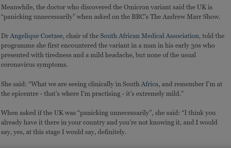 Delta was more transmissible than the original strain, but not more deadly. Lambda was supposed to be the next deadly killer, but it never took hold. Now, Omicron! is the next end of the world–or perhaps just another means to extend the crisis for a few more months. Remember too, there have been literally thousands of COVID variants, Omicron! is just one of many. The next version of ebola may still be lurking out there, but let’s wait for the facts to come in before losing our heads.