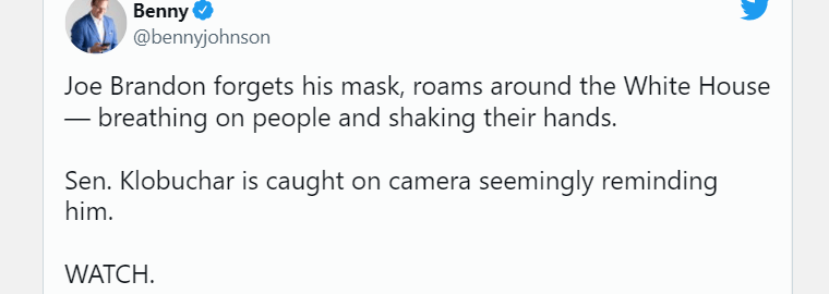 President Biden is another one who failed to live up to his own standards. I have lost track of how many times he has been caught with his mask down.