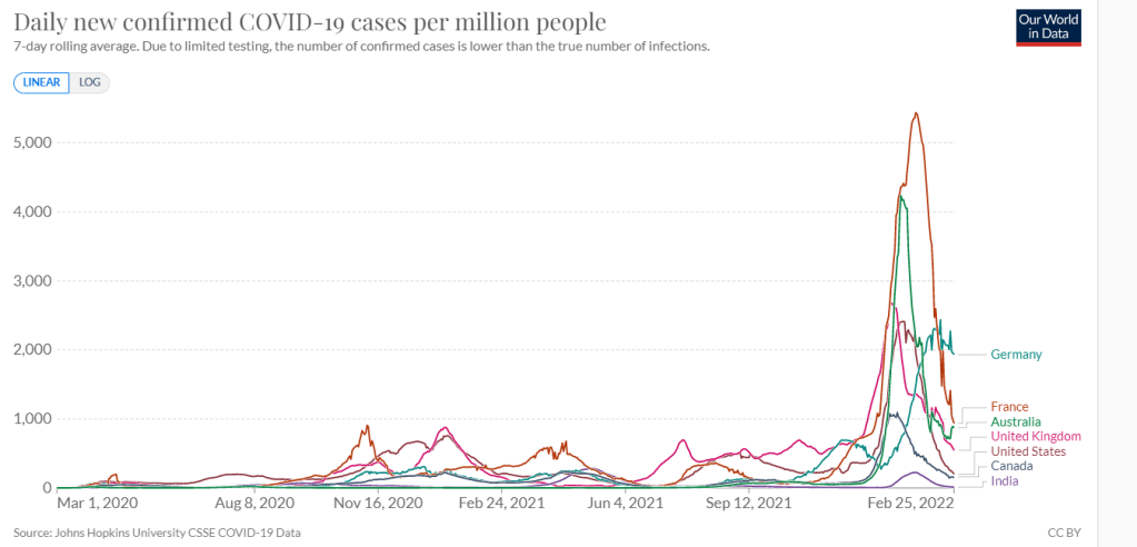Australia has been quite a dumpster fire throughout the COVID era. For the last half of 2021, we started talking more about the limitations of the COVID vaccines, but Australia continued to rely solely on vaccines. Maybe it was not such a good decision. Omicron, which has been the least serious of all, the least pathogenic, impacted Australia more than any of the other strains. In the first two months of 2022, they experienced almost 90% of their cases (323K of 3.2M total) and 57% of their deaths (2,982 of 5,171 total). That does not look like they are improving and learning from mistakes, does it?