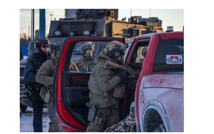 The Canadian leader, Trudeau, sought and quickly obtained authorization from Parliament to use the “Emergency Powers” act to shut down these protests. Maybe it makes sense to clear bridges and traffic routes that have been blocked, but you do not need an act of Parliament to do so. You also don’t need to destroy protestors livelihood to clear the streets.