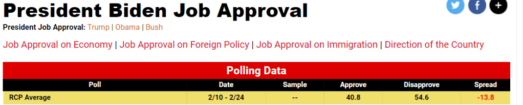 Contrast these numbers with Biden’s. Biden is in the opposite COVID camp and his numbers are cratering fast. Do you think there is a link between COVID policy and popularity?
