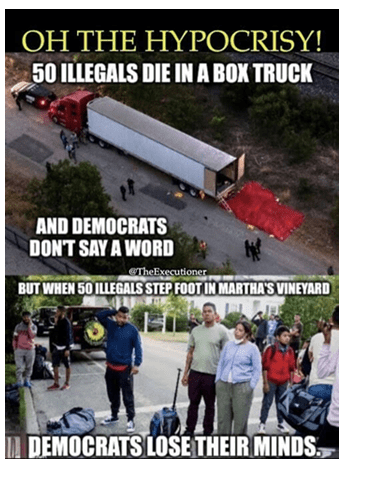 Events in Texas are inconsequential for folks in Martha’s Vineyard–until they themselves feel the consequences. I don’t doubt this incident was actually a challenge for Martha’s Vineyard residents; it also appears migrants were treated well (residents lived out the aphorisms on their lawn signs; good for them!), but McAllen and other border towns are overwhelmed continually, not just once. Can the Left at least acknowledge there is a serious crisis that other Americans are dealing with? Can they ever admit that racism and xenophobia are totally unrelated to this problem?