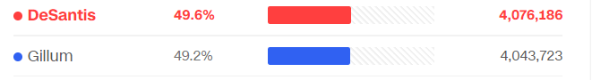On the other hand, Republicans who have produced did better this year. Florida Governor Ron DeSantis barely won his 2018 race: