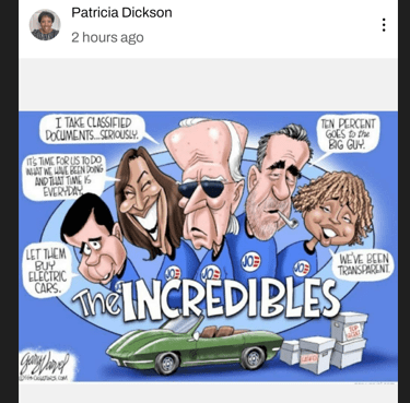 Hopefully, by now you are aware President Biden took classified materials from the White House to three different locations after his term as VP ended. One of the locations was his home garage (a LOCKED garage, mind you), next to the president’s prized Corvette.