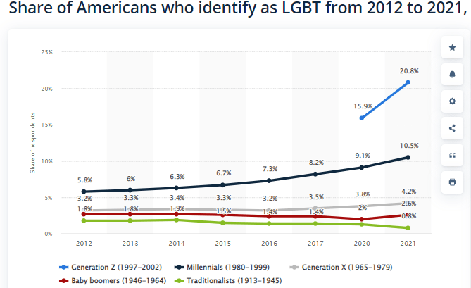 Family and children give meaning to others lives. Without children, that fulfillment will be lost for a great many. The LGBTQ sexual fads (the numbers clearly show this is a fad), prevent millions from leading very different, almost certainly more fulfilling, lives. Civilizations since the beginning of time have supported marriage and family, developing countless traditions and institutions which allow for the proliferation of their own culture. Why should we accept the argument that suddenly abandoning such values is “no big deal”? Transgenders, by far, have the highest rate of suicide among all demographics. Educators pushing children into genital surgery has not changed that statistic an iota. Our neighbors odd behavior may make some uncomfortable, but this fight is not about compelling our neighbors to change simply to suit our whims; it is about saving humanity for our children.