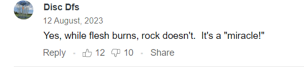 Are we to believe only flesh and wooden structures burn in such events? The church’s roof and windows are not made of stone, yet they are undamaged. The fire’s heat could surely melt glass. The church survived because it wasn’t even exposed to the fire, not because it resisted the fire. Perhaps the church grounds were well prepared for this event, but nature has a knack for destroying the best laid plans of mice and men.