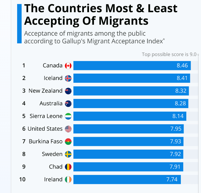 I am always willing to consider others’ arguments, but the first problem with his is that America isn’t excluding the rest of the world. According to this 2019 Gallup poll, the US ranked the sixth most accepting (of 149 countries) of immigrants. That’s a pretty good ranking. https://news.gallup.com/poll/320678/world-grows-less-accepting-migrants.aspx