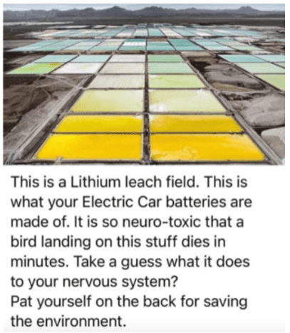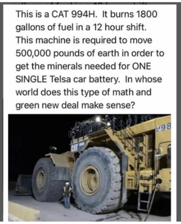 What about electric vehicles? Many Americans believe they are helping to protect the environment by buying EVs. Certainly, EVs have no emissions unlike gasoline powered vehicles. However, why consider only the negative environmental impacts of gasoline powered vehicles but ignore EVs impact? The environmental costs of EVs starts with its fuel source, the lithium-ion battery.