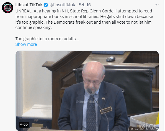Raichik: So should this picture [of gay oral sex] be in books in elementary school? (From the book “Gender Queer”. See minute 47 of the video. I won’t post the picture myself)