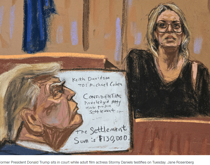 Stormy Daniels, the world renown “sex worker” (we know what she really is), recounted in court all the salacious details of her sexual encounter with President Trump (details which appear to have changed over time). What is the point of such testimony if not to embarrass the former president and damage his character with the jury? The specifics of the sexual encounter are not related to the hush money payments which the case is about. The question is about how the money was recorded, not what clothes were worn, what positions were taken, nor how satisfying it was.