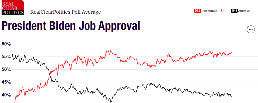 Democrats’ hope is there are enough uncommitted or loosely committed Trump voters who can be convinced Trump is even worse than Biden. Certainly, Biden needs this lifeline. His approval rating (an average of more than a dozen polls) has fallen from the mid-50’s to 39.5% (as of May 13). President Trump four years ago today had a 45.5% approval rating–and he lost his re-election bid. In the last hundred years, only two Democrats, LBJ and Jimmy Carter, failed in their re-election attempts (in 1968 and 1980). Biden’s unpopularity rivals both of them.