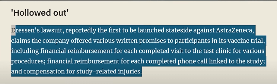 Dr. Campbell interviewed a woman who received a COVID vaccine November 2020 during a Phase III AstraZeneca trial. Potential side effects, she was told, were extremely rare. Her trouble started immediately after injections, within an hour.
