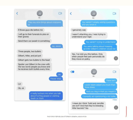 Next is Jay Jones, current member of the Virginia legislature and Virginia Attorney General candidate. He sent texts wishing his political rival and his minor children dead.