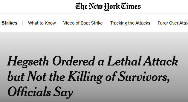 To support claims of rampant illegal orders emanating from the Trump Administration, a story in the Washington Post said two survivors in an attack, clinging to driftwood, were ruthlessly gunned down by the American military. This would likely be a violation of the Geneva Convention, but that story was rebutted by none other than New York Times a few days later. How interesting it is when progressive one-channel media debates itself!